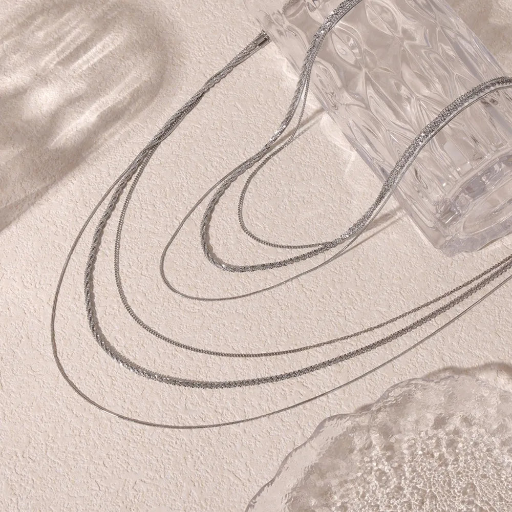 Fashionable Cuban titanium steel necklace hip-hop style multi-layer layered women's collarbone chain